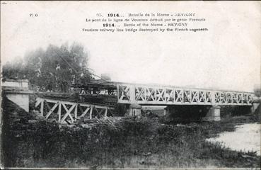 Le pont de la ligne de Vouziers détruit par le génie français