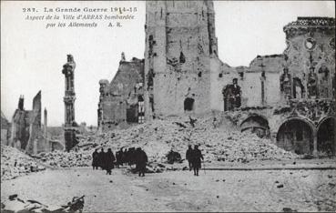 Aspect de la ville d'Arras bombardée par les Allemands