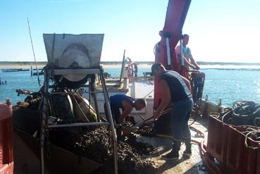 Pré-nettoyage des moules sur le bateau atelier