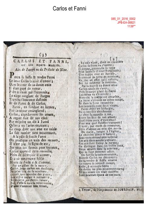 Incipit du couplet | our la belle et tendre Fanny / Le beau Carlos brûlait d'amour |