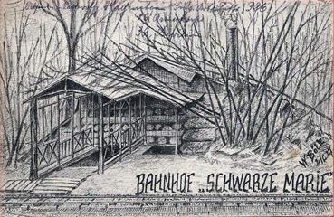 | Note | Carte allemande dessinée - Feldbahn - gare |