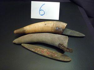 | Note | Corne évidée muni d'un crochet pour attacher à la ceinture et contenant une pierre à aiguiser trempant dans l'eau vinaigrée |