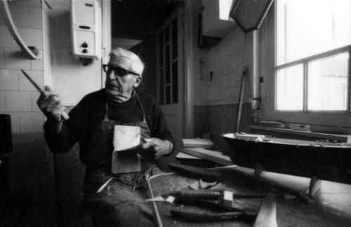 Note | Le capitaine, chez lui, avec ses maquettes taillées au couteau |