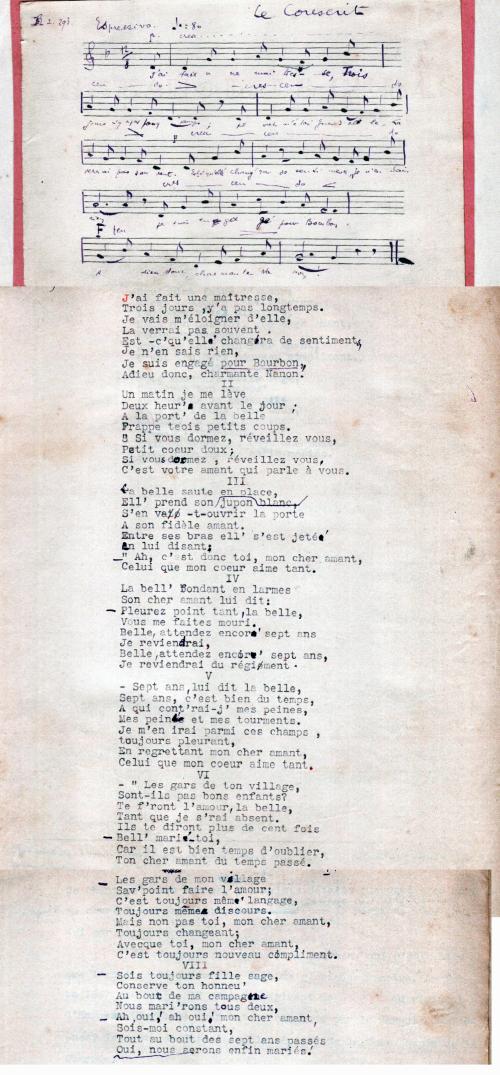 Incipit du couplet | J'ai fait une maîtresse / Trois jours y a pas longtemps |
