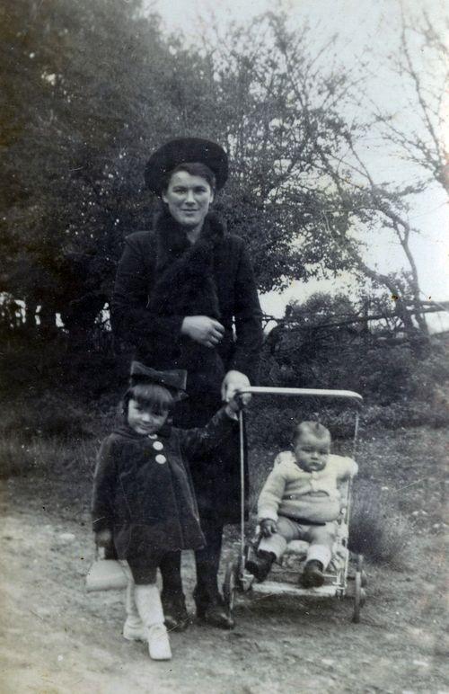 Madeleine Brémaud avec Mauricette et Maurice (en poussette) chemin de la Girardière