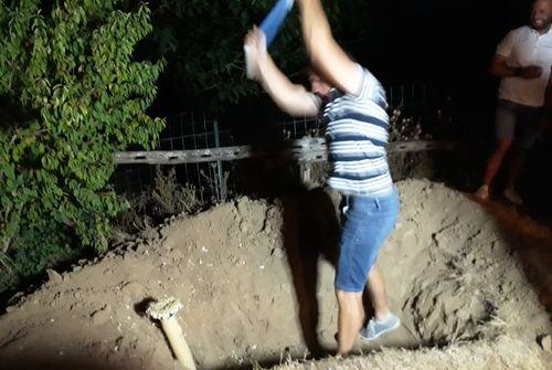 Plantation de la cheville et enterrement du cercueil avec la bouteille