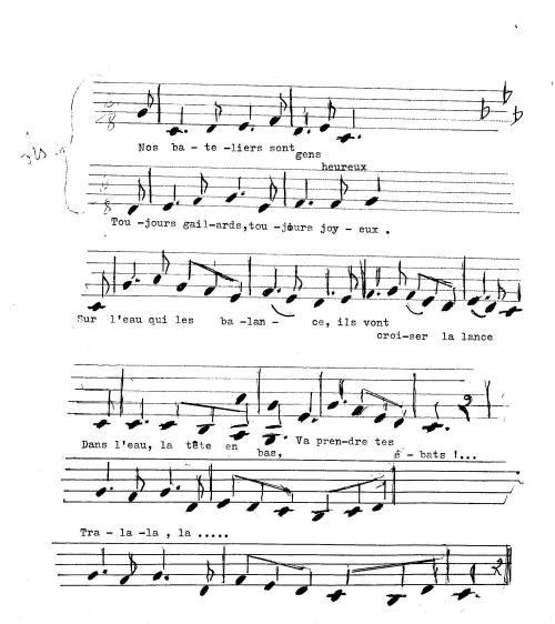 | Incipit du couplet | Nos batelliers sont gens heureux / Toujours gaillards toujours joyeux |