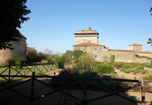 Vue sur la fuie et le donjon du jardin