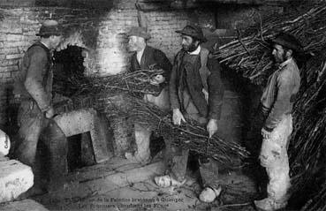 Fabrication de la faïence bretonne - Les fourniers chauffant le four