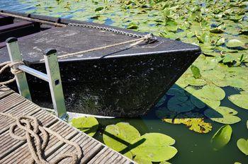Note | Une barque appelée toue de chasse, inspirée de la plate traditionnelle du lac de Grand-Lieu, commandée par Jean-Paul Guerlain pour le transport sécurisé de ses invités. L'une des deux toues achetées par l'association Les Pigouilleurs à Jean-Paul Guerlain. |