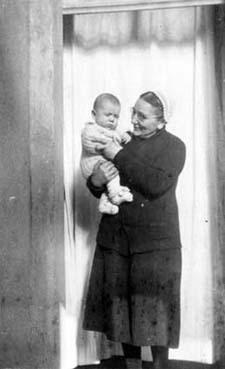 Femme âgée portant la coiffe, posant avec un enfant