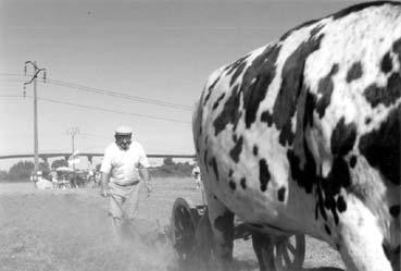Emile Pineau charruant lors d'une fête en juillet