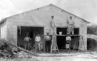 Maçons posant devant leur chantier