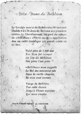 Verso de la carte représentant la statue de Notre-Dame de Bethléem