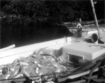 Filet rempli d'alose dans un canot