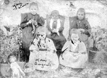 Marie Salmon, ses trois soeurs et Marie Ringeard posant