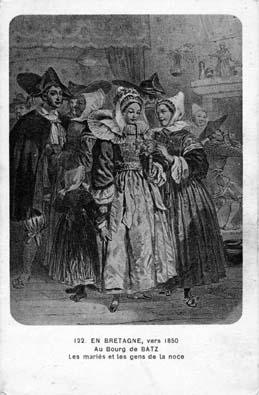 | Note | "En Bretagne, vers 1850, au Bourg-de-Batz, les mariés et les gens de la noce." (d'après Hippolyte Lalaisse) |