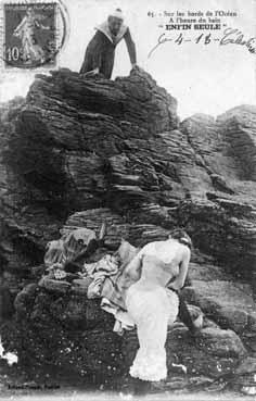 Mots Clé | roche, rocher, pierre ; baignade, baigneur(s) ; plage, estran ; sous-vêtement(s) ; |