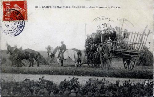 | Note | le départ poour la moisson, des aoûteux sur le chariot |