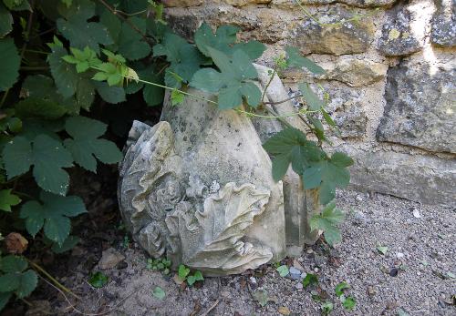 Chapiteau sculpté dans le jardin médiéval