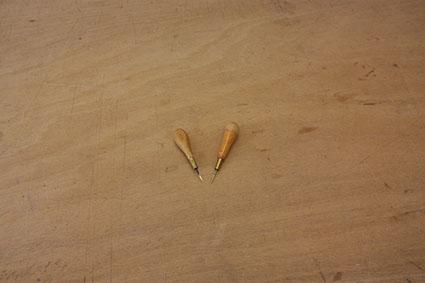 | Note | Outils utilisés par Michel Charrier, MOF sellier-harnacheur. Les alènes sont en acier trempé, elles percent le cuir sans le déchirer. Leur section losange, ronde ou plate varie selon le type de couture et l'épaisseur du cuir. |