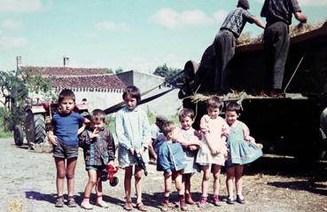 Les enfants devant le matériel de battage