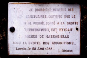 Plaque de la grotte de Lourdes