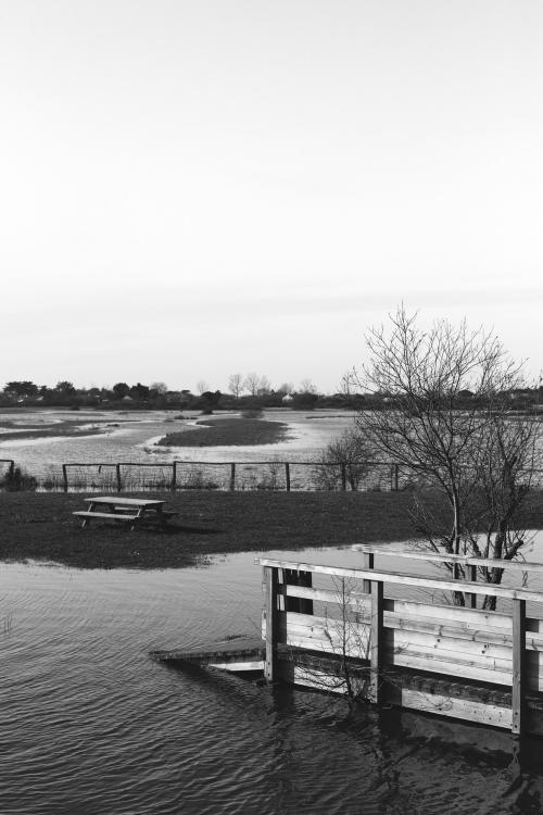 Aire de pique-nique inondée dans le marais de Sallertaine