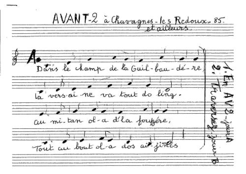 | Incipit du couplet en langue | Dans le champ de la Guilaudère / La versai ne va tout do ling |