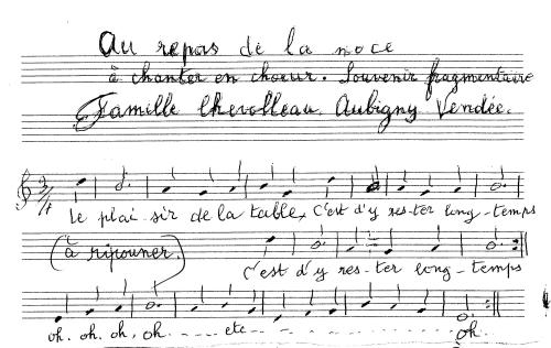 | Incipit du couplet | Le plaisir d'être à table / C'est d'y rester longtemps |