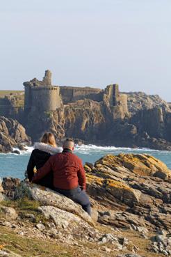 Jeune coupe face au vieux château