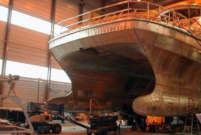 Construction du premier catamaran, par les chantiers Fejllstrand, Norvège
