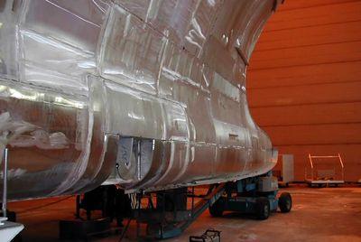 Construction du premier catamaran, par les chantiers Fejllstrand, Norvège